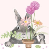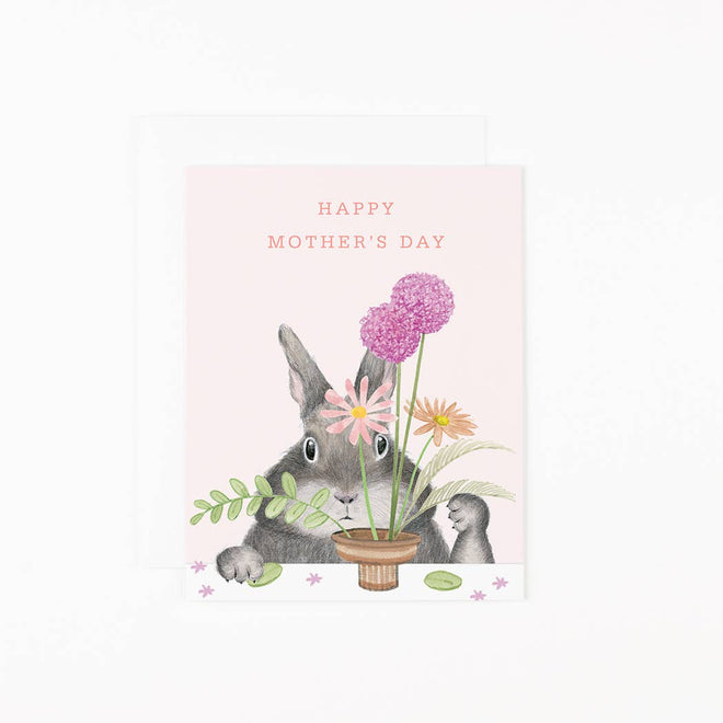 A graphite bunny arranging flowers text reads "Happy Mother's Day"