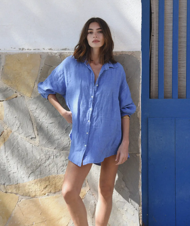 The Palma Shirt is the ultimate oversized long sleeve linen shirt, with beautiful mother of pearl buttons. Made from a breathable linen fabric and loose fit, the Palma Shirt is the ultimate beach cover up or casual button down top to be paired perfectly with linen pants or shorts