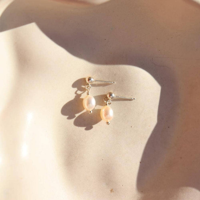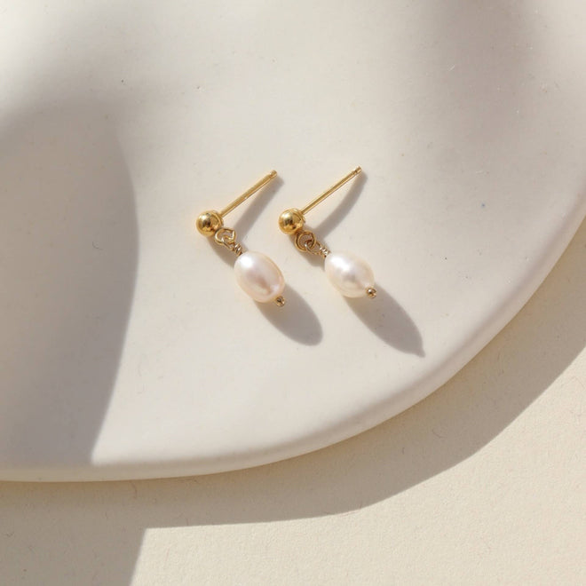 Chic little white pearls suspended from a ball post give a classic and timeless look that's perfect for either your first or second piercing. Our Pearla Studs are deliciously dainty addition to your daily style.