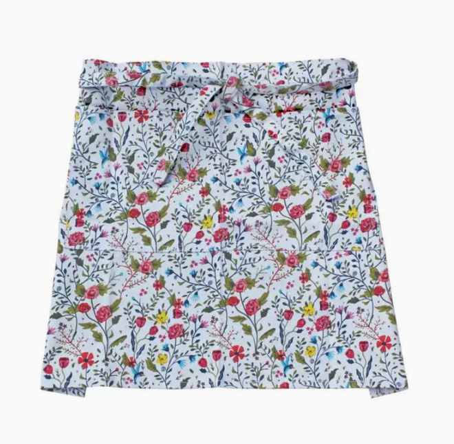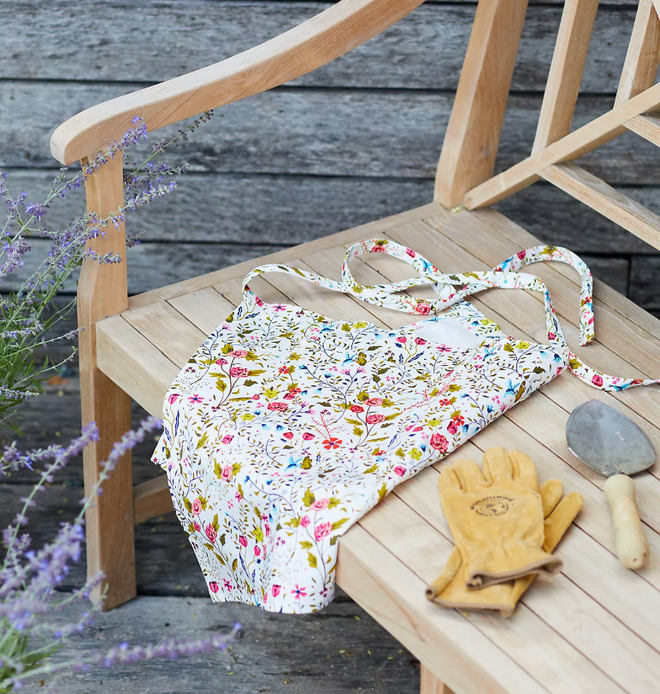This stylish half apron matches our popular Arm Saver gloves! Made with cotton twill, it has drawstrings that wrap around and tie in front. Two big pockets hold seed packets, scissors, and other essentials. Available in our Garden of Paradise, Heirloom Garden and Woodland Garden prints, all Womanswork exclusives.