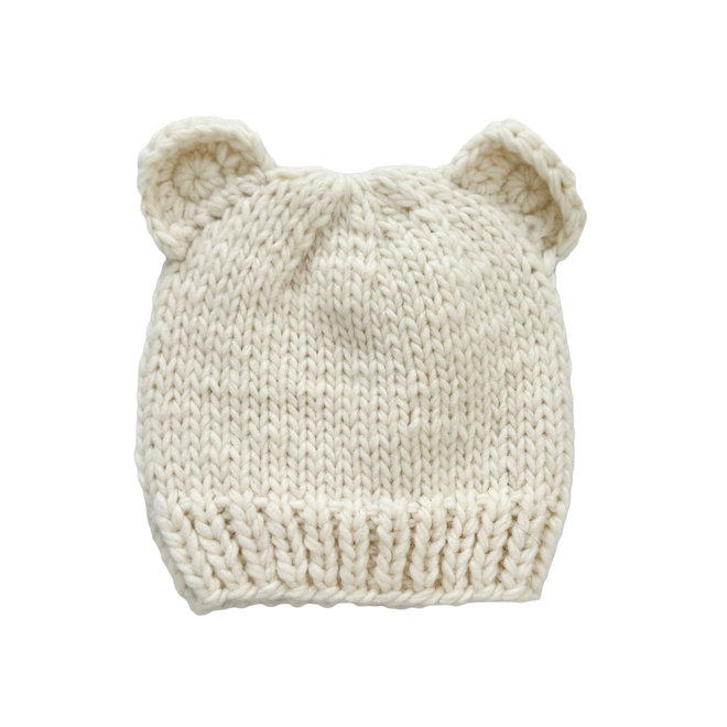 Warmth meets whimsy with our hand-knit bear hat for babies, an irresistibly cute accessory for your little one. Keep your baby cozy and stylish with this delightful hand-knit accessory, perfect for those chilly days and precious photo moments. Match this hat with coordinating Bear Cardigans for a complete outfit.