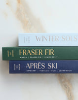 New for 2025, our Holiday Collection includes six favorite fragrances that celebrate the best of the season. Fraser Fir stays true to the fresh and crisp notes of this evergreen fir tree, and we combined it with a hint of amber to warm up this well-rounded candle. Timeless for a reason, this traditional holiday blend is a customer favorite every year. Fragrance Notes: Amber, Fraser Fir, Lemon Zest • 20 Incense Sticks • Handmade in the USA