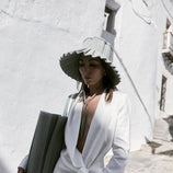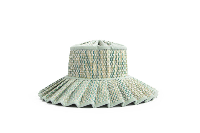 Fiji features vanilla coloured thread in a basket weave, woven through its natural grass fibre base, which has been lightly hand-dyed to create a muted blue base, with a deep seafoam-coloured fabric trimming. Lorna Murray sun hats combine style and sun-safety. Our grass fibre woven material is certified UPF 50+, protecting your precious skin from the elements. Intentionally created for the modern lifestyle, our sun hats can be easily folded, making them compact for travel, perfect for wherever life takes you.