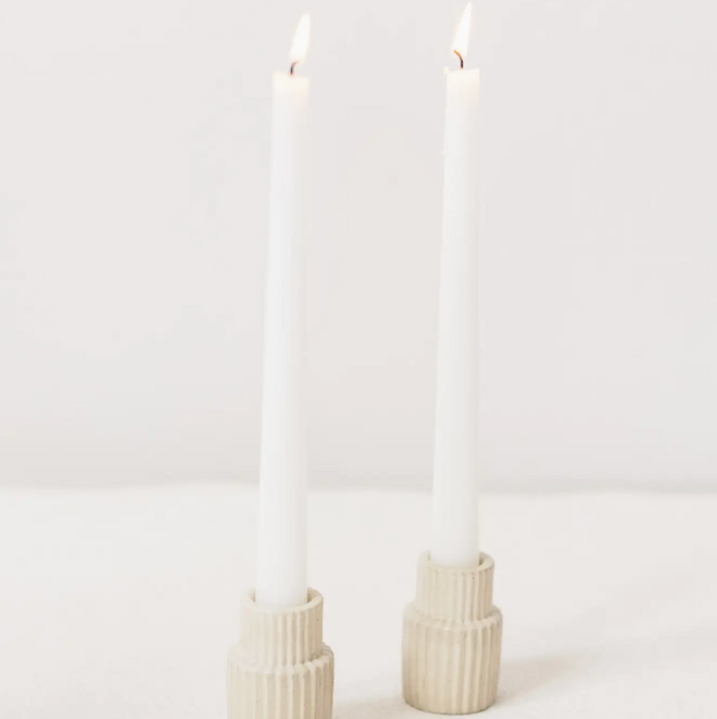 The satin finish makes for a modern taper candle holder and the 360 degrees of ribbed/fluted details keeps things sleek and serves as a bold accent. Group in multiples to give your holiday decor a little spruce up this fall and winter.