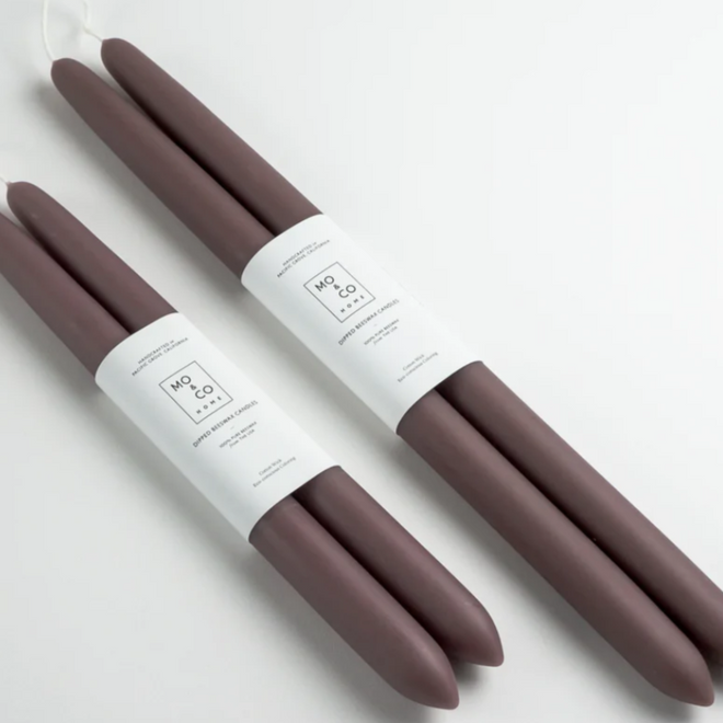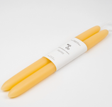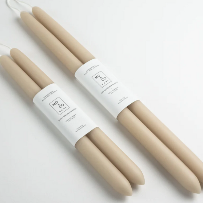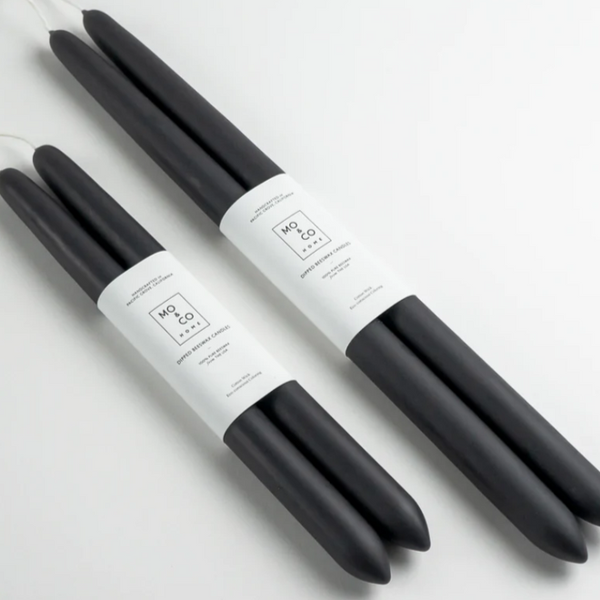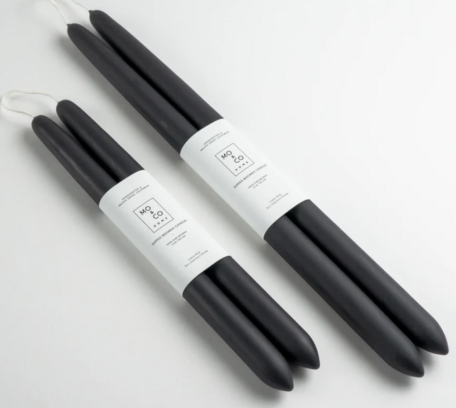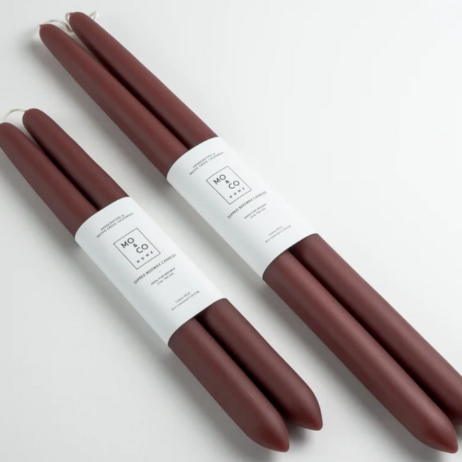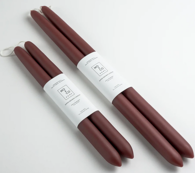 Classic Taper: 10 inches Sold in pairs Ingredients: 100% Beeswax from bees in the USA Cotton Wick Mica minerals Each candle is handcrafted with care and dipped over 25 times.