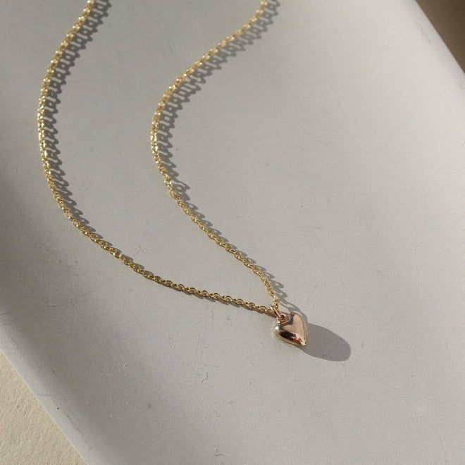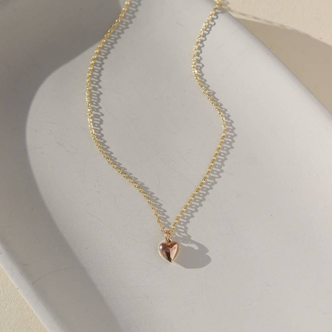 A simple heart charm to represent eternal love. This necklace is inspired by the love letter that Ludwig van Beethoven penned to his "Immortal Beloved"– "Ever thine, ever mine, ever ours". A sentiment to be shared with your soul mate, daughter, sister or forever friend. DETAILS Choose from 14k gold fill or sterling silver Available in 16" or 18" lengths Hypoallergenic, water-safe and nickel free