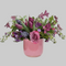 A romantic jewel-tone arrangement that says “I adore you” in every unexpected bloom. Beautifully arranged in an elegant pink glass vessel.