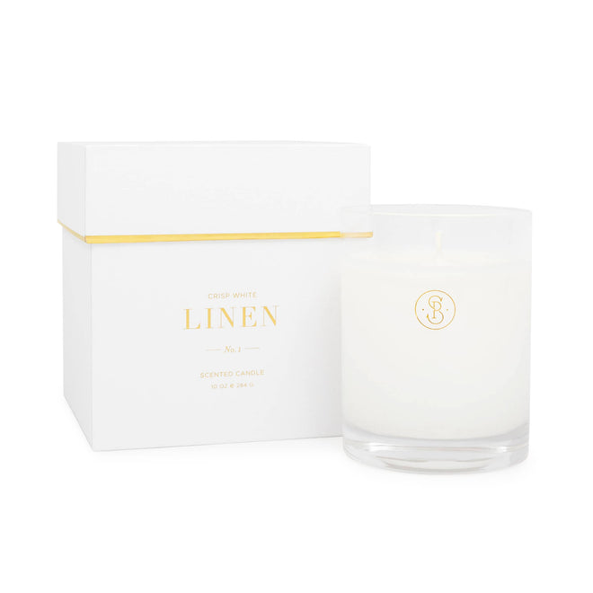 Crisp White Linen has top notes of grapefruit, bergamot citrus, and lemongrass, with heart notes of green tea and geranium. With a cotton wick and soy-blend wax, the candle burns slowly so that the scent fills the air without being overwhelming. The delicate monogram complements any decor, and the box itself looks like a present. Hand-poured in the USA.