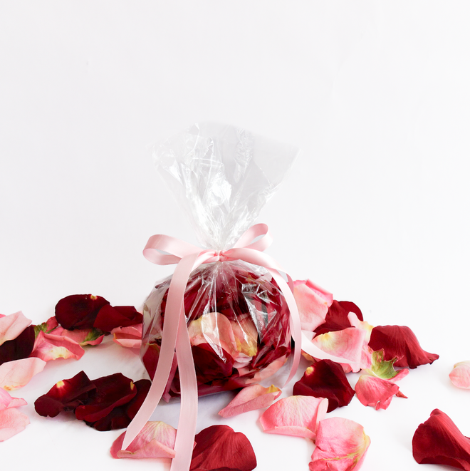 A mix of pink and red rose petals packaged in a bag with satin ribbon to make your Valentine's Day celebration extra special! Need a little extra romance? Sprinkle these gorgeous rose petals anywhere you want to add that extra Valentine's Day touch.