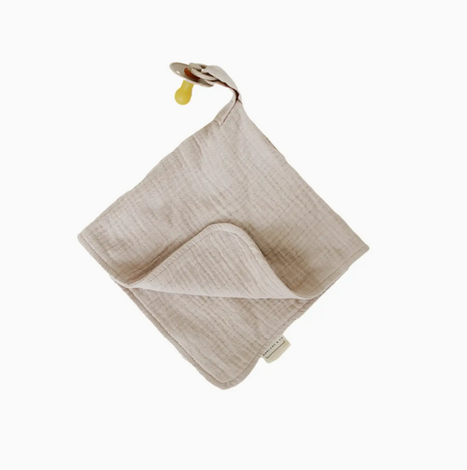 Our natural sand lovey blanket with snap closure (Pacifier and Teether not Included) is made from a double layer of 100% soft organic cotton muslin that is soft and lightweight, perfect for all seasons and will not irritate sensitive skin.