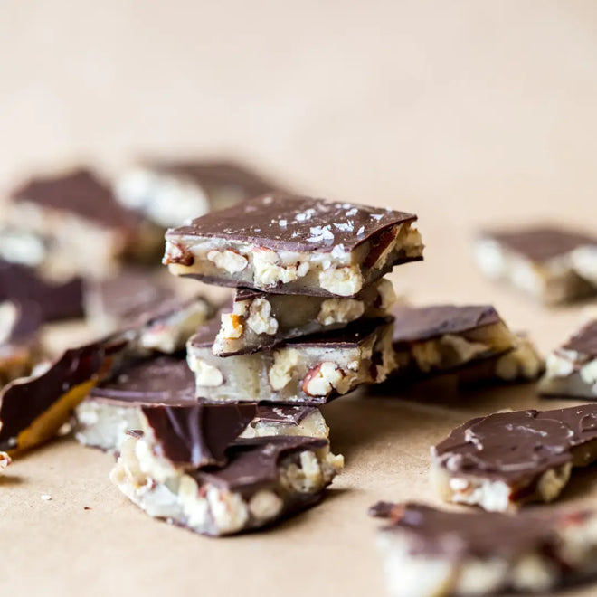 Inspired by time in austin, texas, this box of brittle brings you a touch of the heartland with crunchy salted brown butter pecan brittle covered in layers of rich 70% dark chocolate. Enjoy on its own or crumbled on top a bowl of vanilla ice cream. 113 gramsDetails