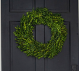 Elevate your holiday decor with our Classic Boxwood Wreath. This wreath boasts a timeless and modern design, perfect for adding a touch of elegance to your home. Handcrafted with high-quality boxwood, it adds a touch of greenery to any space, indoor or outdoors. Embrace the beauty of nature with this traditional yet stylish wreath.