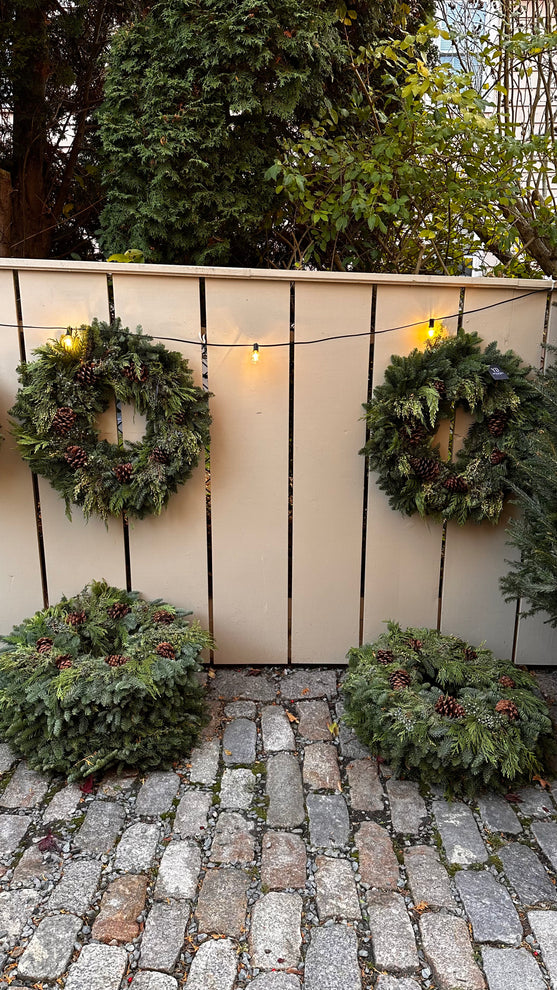 Our signature deluxe multi cone wreath is a staple for any entry door.