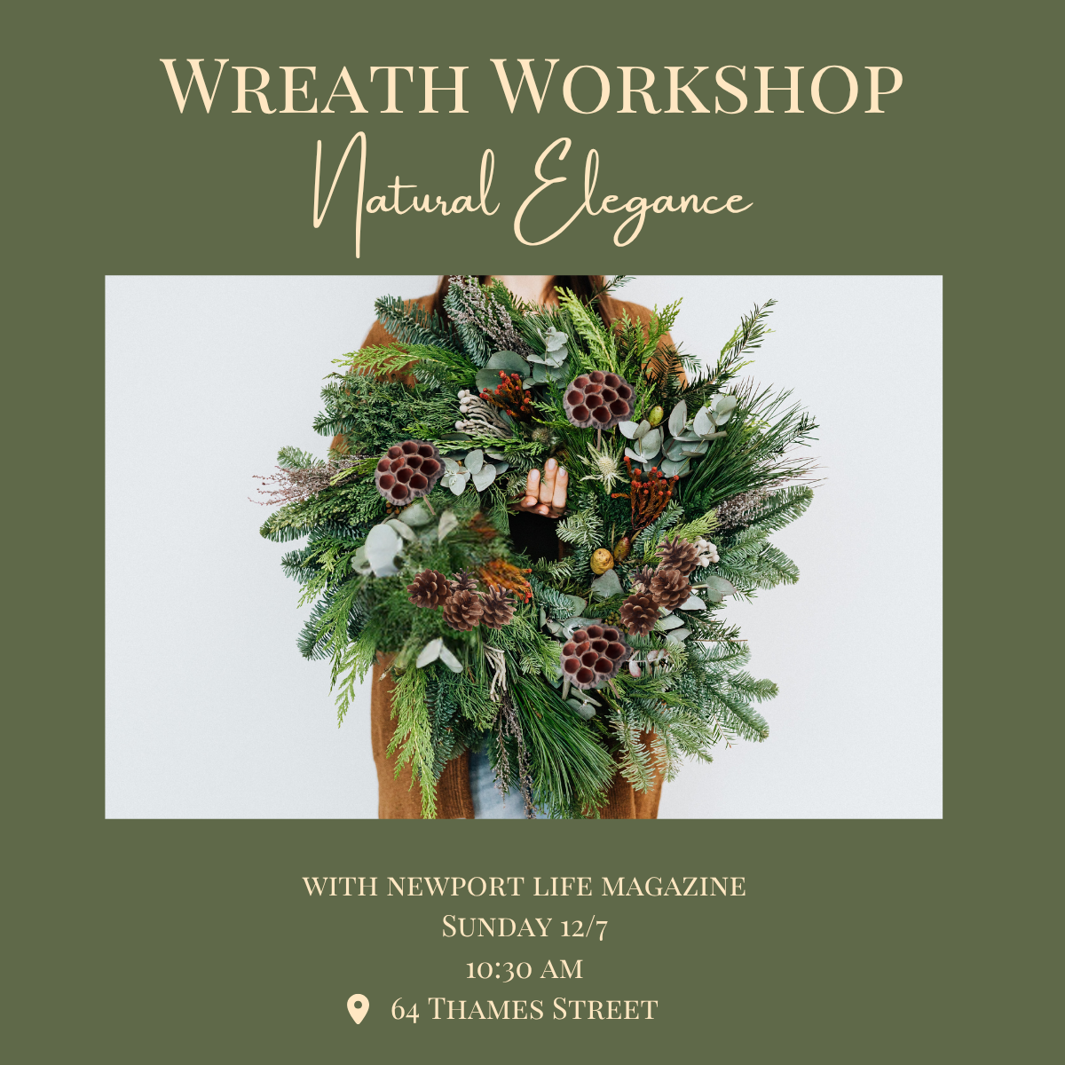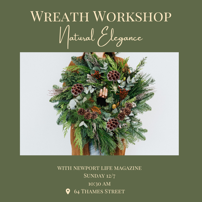 Join us on Sunday, December 7th at 10:30AM for one of our favorite holiday traditions — the Annual Holiday Wreath Workshop at Young Designs Floral Studio, presented in collaboration with Newport Life Magazine!