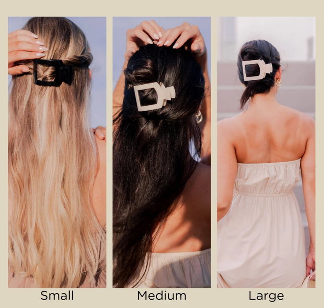 Our innovative hair clip is made from a nearly unbreakable material that ensures durability and comfort. With the TELETIES Flat Clip, you can say goodbye to the discomfort of traditional hair clips and enjoy your relaxation time. Whether you're practicing yoga, lounging in a chair, or simply sitting back, this hair clip is designed to make your life easier. We recommend the large size if you have long, thick, or curly hair; medium is perfect for most hair types, and small is ideal for fine or thin hair.